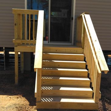 When your home is delivered our local contractor measures and builds your steps on site to add a beautiful entry to your new home, complete with wooden spindles and hand rails!